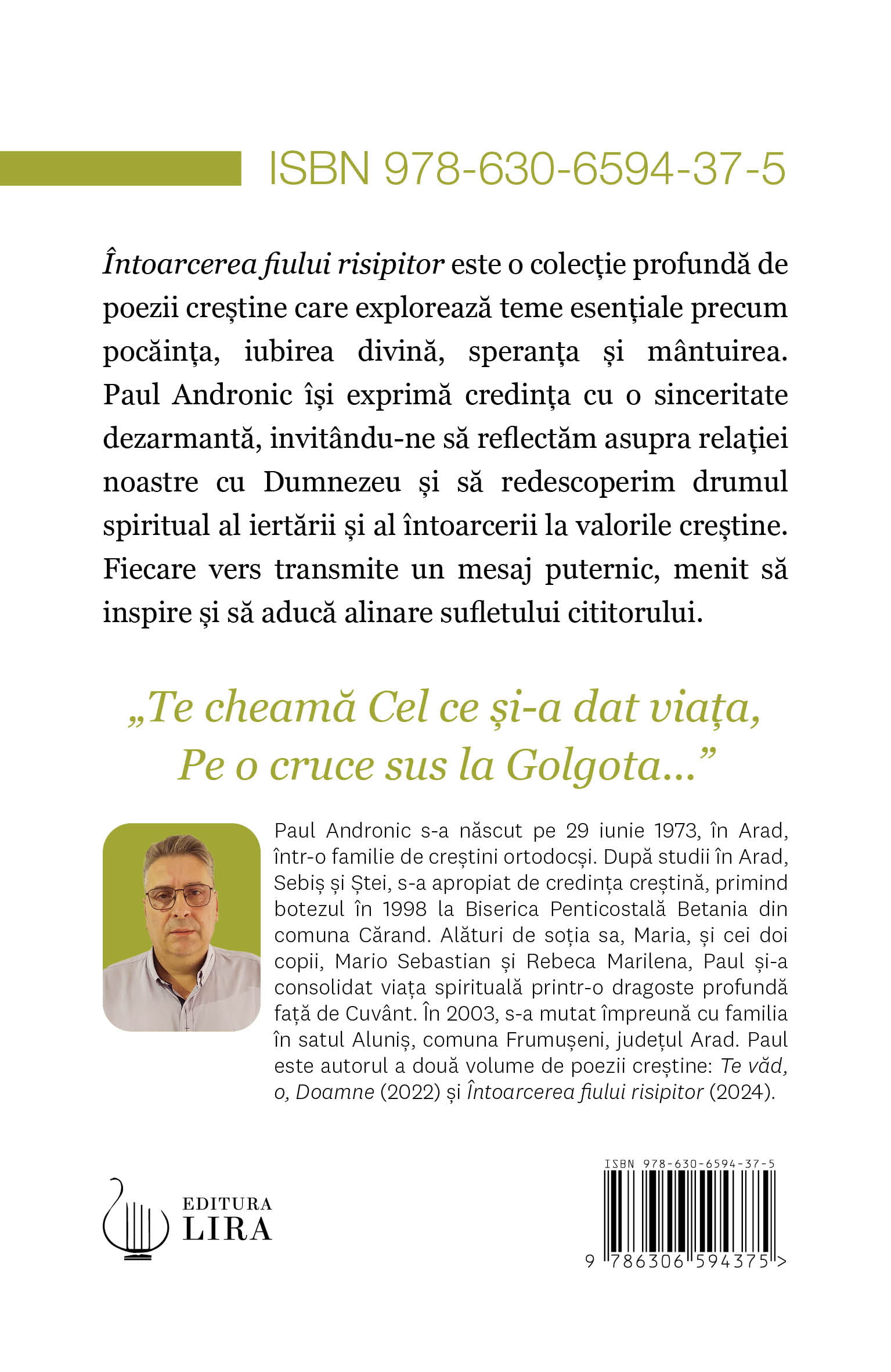 este o colecție profundă de poezii creștine care explorează teme esențiale precum pocăința, iubirea divină, speranța și mântuirea. Paul Andronic își exprimă credința cu o sinceritate dezarmantă, invitându-ne să reflectăm asupra relației noastre cu Dumnezeu și să redescoperim drumul spiritual al iertării și al întoarcerii la valorile creștine. Fiecare vers transmite un mesaj puternic, menit să inspire și să aducă alinare sufletului cititorului.