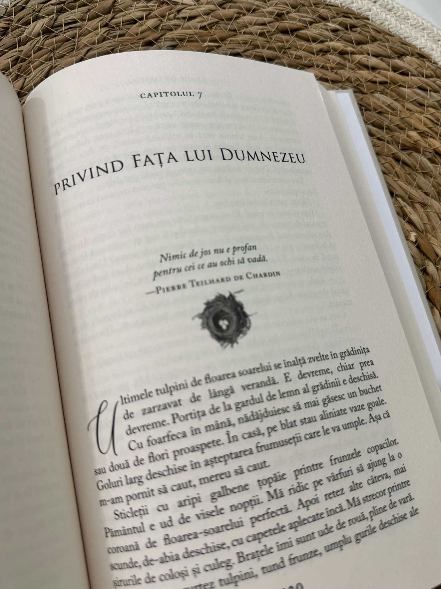 Imaginea cuibului cu două oușoare albastre simbolizează darurile mici, delicate, pe care le trecem adesea cu vederea — darurile prin care Dumnezeu ne atinge inima și ne învață să trăim mai încet, mai adânc, mai frumos.