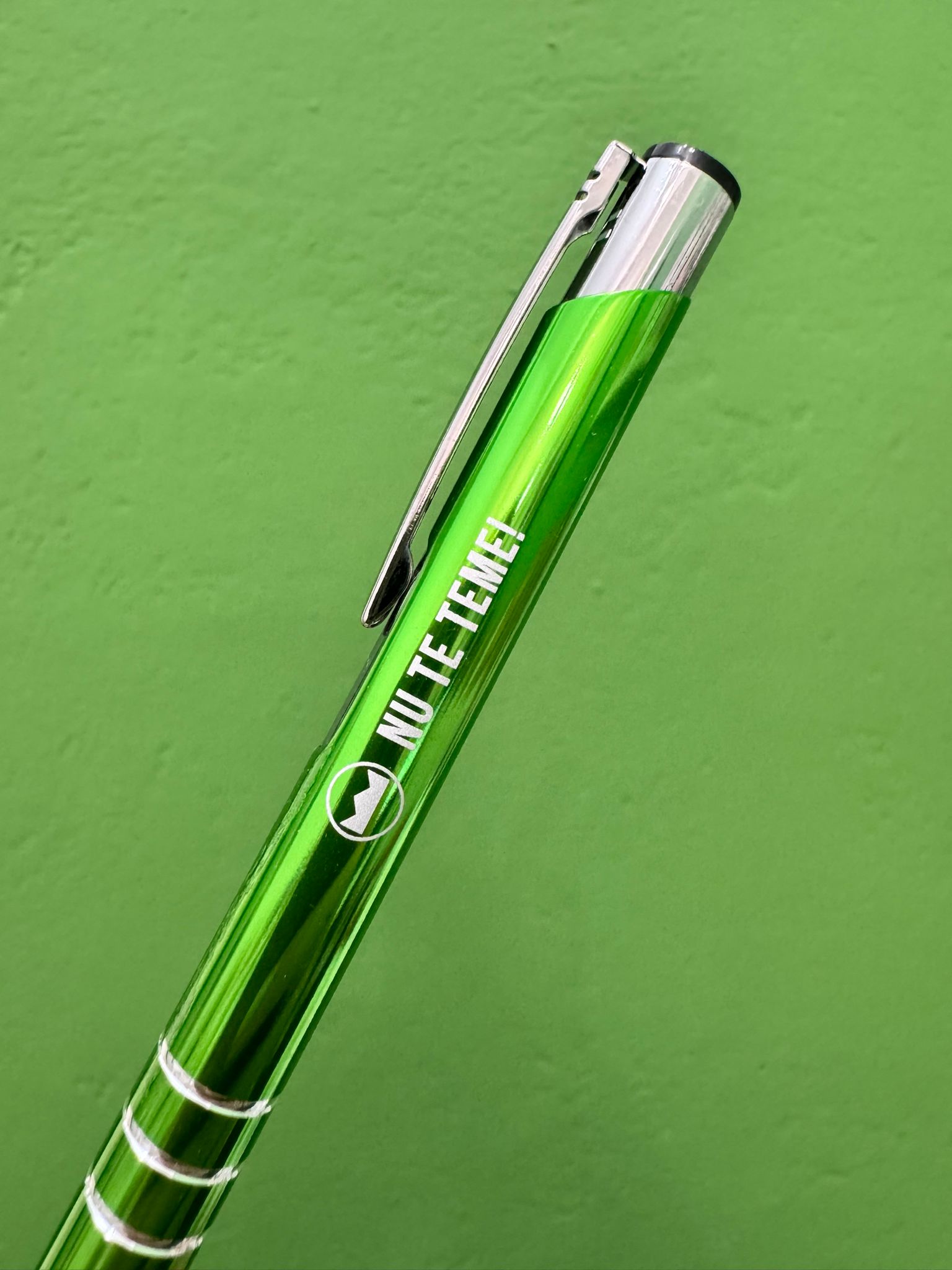Acest pix metalic verde te încurajează să îți amintești în fiecare zi că Dumnezeu este cu tine. Cu un design modern și o inscripție fină, devine nu doar un instrument de scris, ci un memento de credință și încredere.