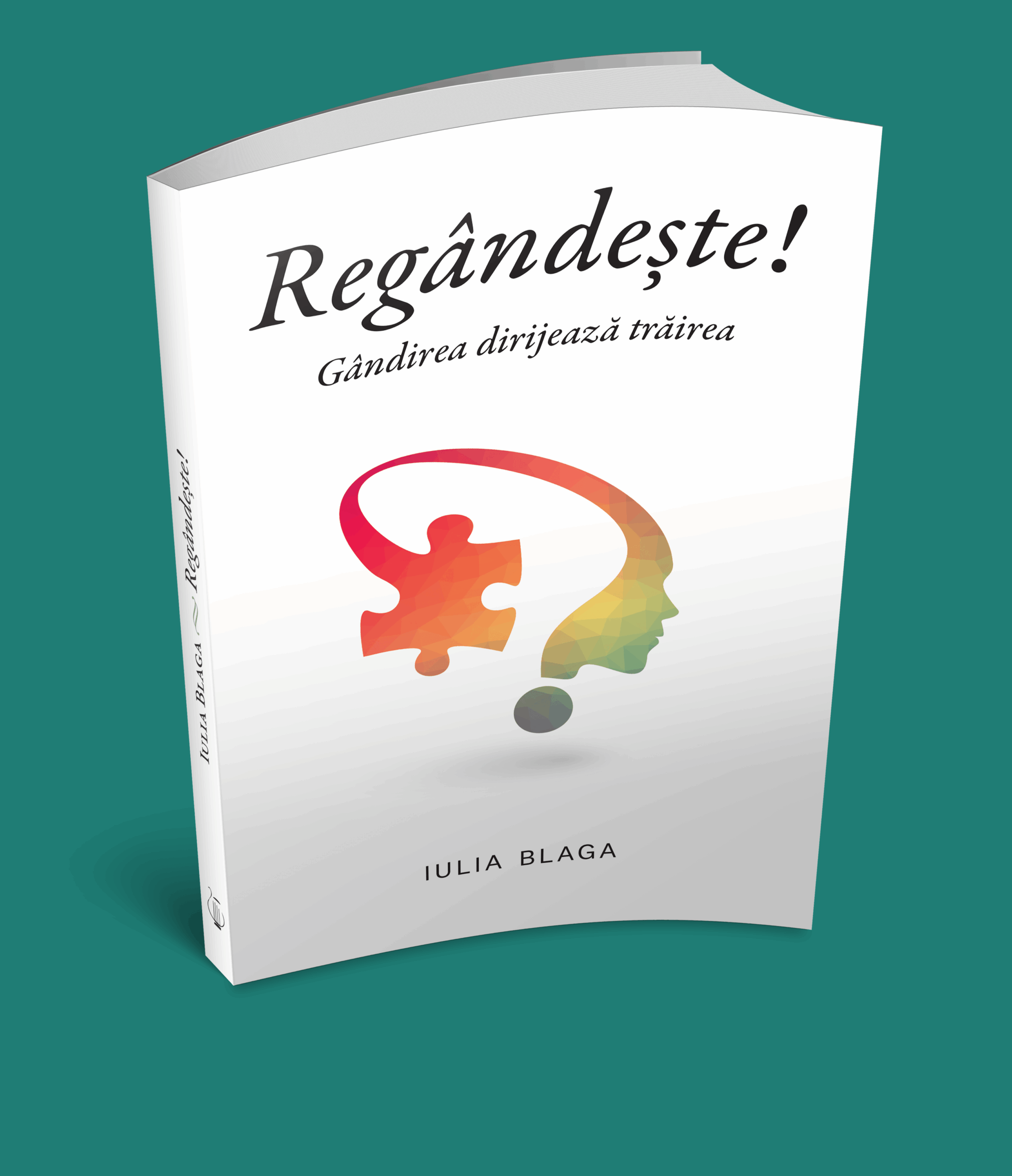 Regândește! Gândirea dirijează trăirea este ultima carte scrisă si publicată de Iulia Blaga. Această carte reprezintă un rod bogat și bun. O hrană sanatoasă pentru sufletul dornic de cunoaștere, de lumină și de adevăr. O hrană pentru cel care știe să se „înfrupte” din harul turnat prin aproapele său, o hrană pentru mintea și inima însetată după neprihănire și creștere spirituală.